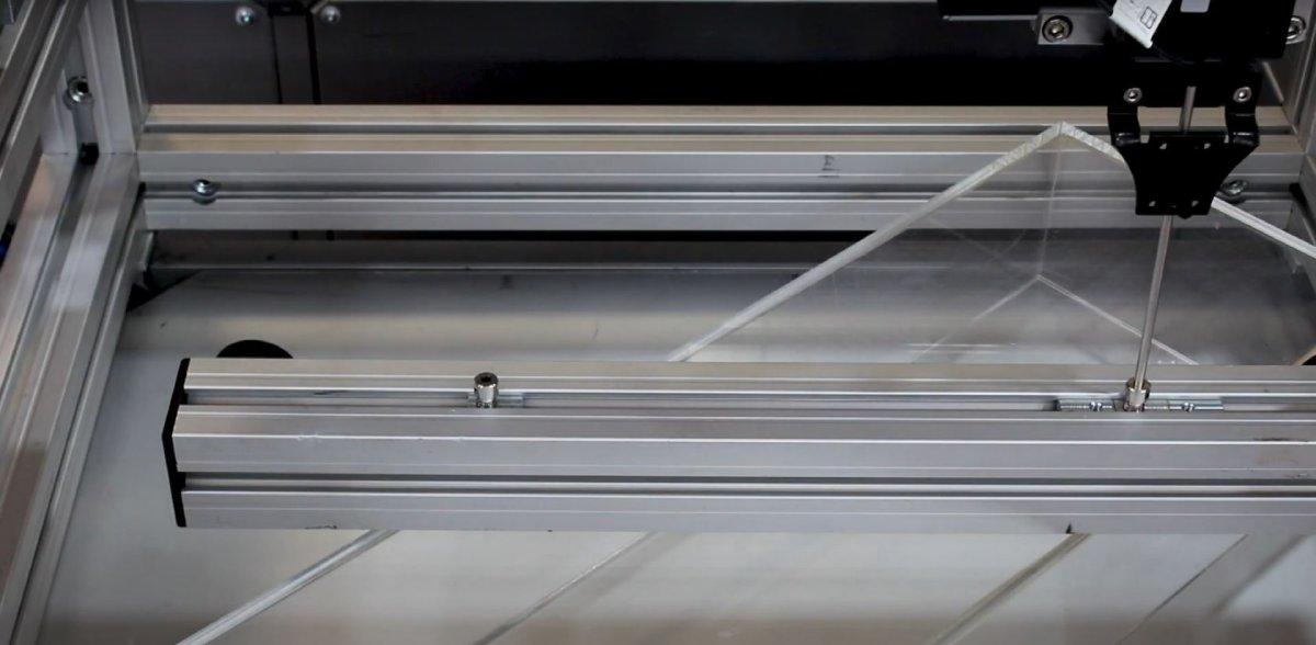 這裡使用的龍門系統是由 igus 製造的三軸龍門型線性機器人。龍門系統具有成本效益,並且提供無潤滑劑的滑行功能。這使維護成本降低。